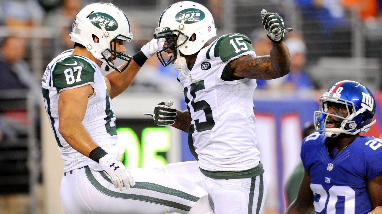 Description: New York Jets wide receivers Eric Decker and Brandon Marshall
